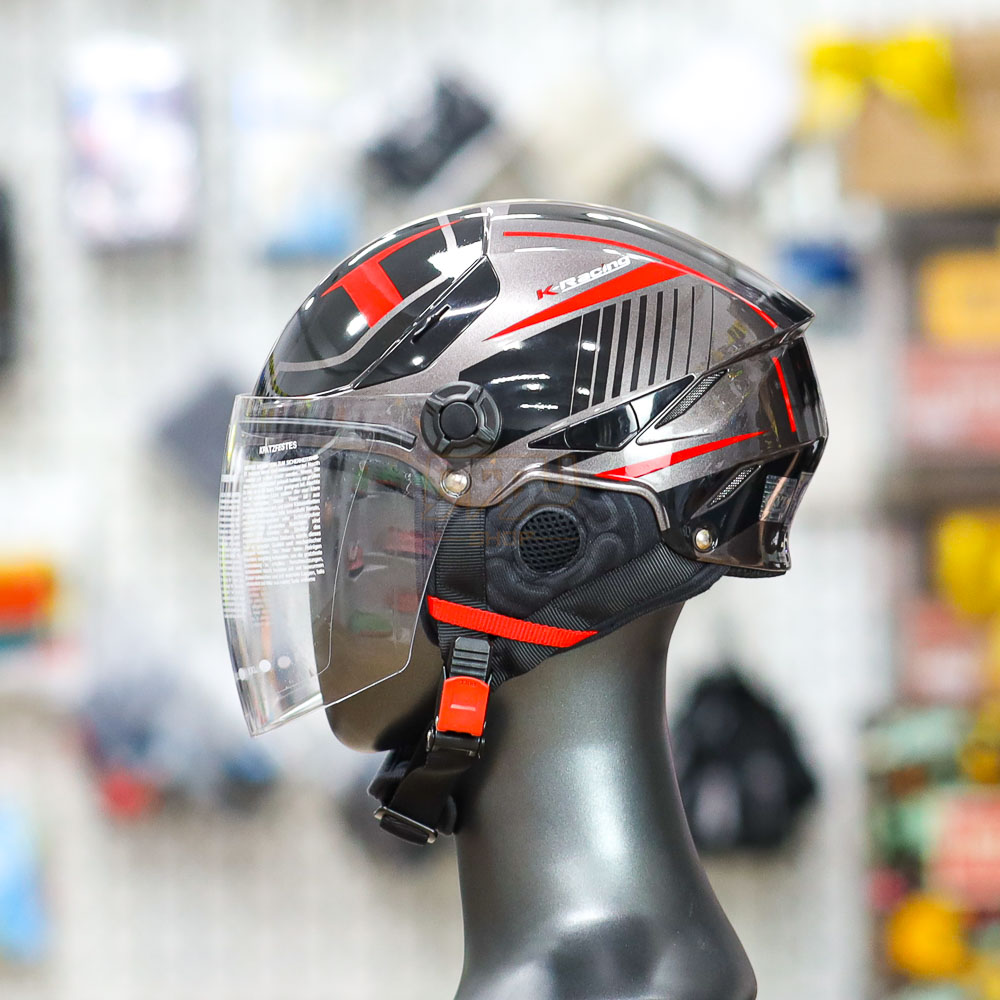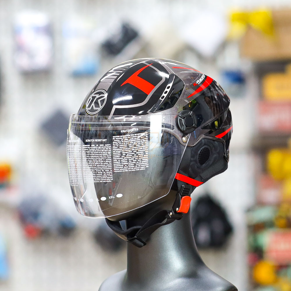 Mũ KYT Tiger Jet sở hữu kiểu dáng 1/2 hiện đại, nhỏ gọn, phù hợp với nhiều kích cỡ đầu, đặc biệt dễ chịu khi đội trong thời gian dài. Màu sắc đen xám đỏ kết hợp hài hòa, tạo nên vẻ ngoài cá tính, thể thao và nổi bật khi di chuyển trên phố.