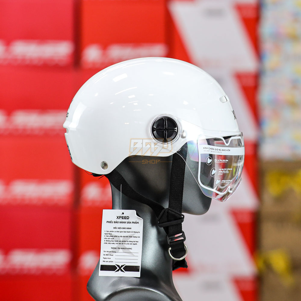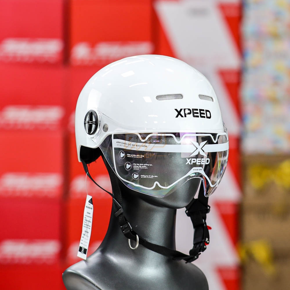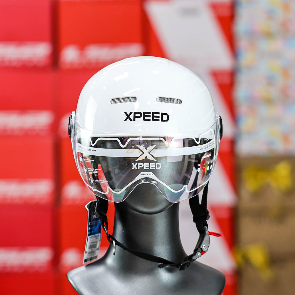 Mũ bảo hiểm 1/2 XPEED HJC Vivo 20M trắng bóng, kiểu dáng nhỏ gọn, có kính che tiện lợi, vỏ ABS bền bỉ, đệm êm thoáng khí. Phù hợp di chuyển nội đô, giá phải chăng, chính hãng.