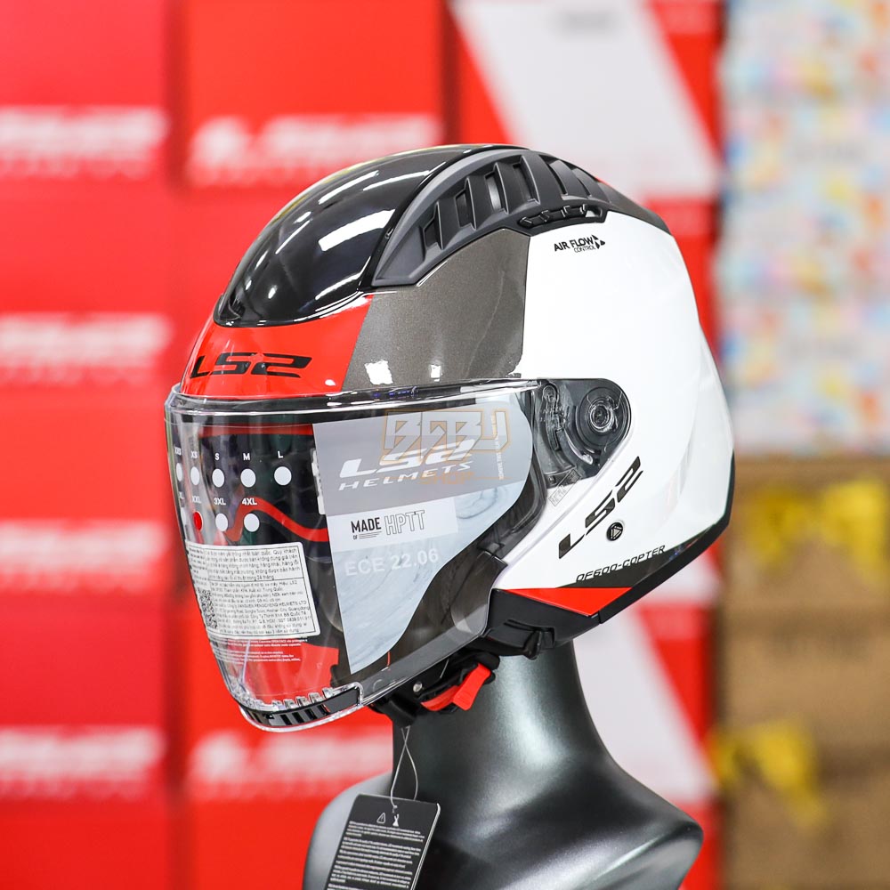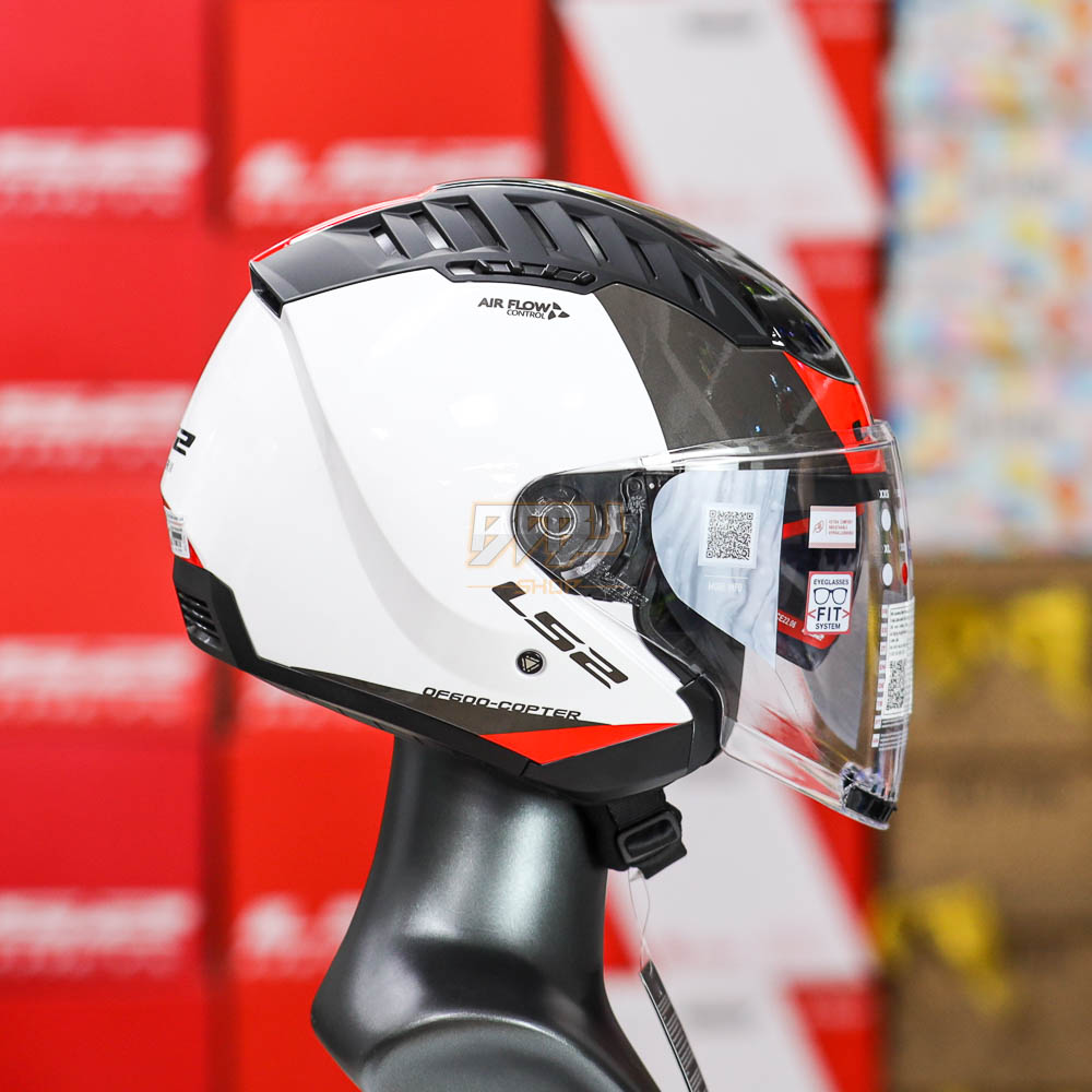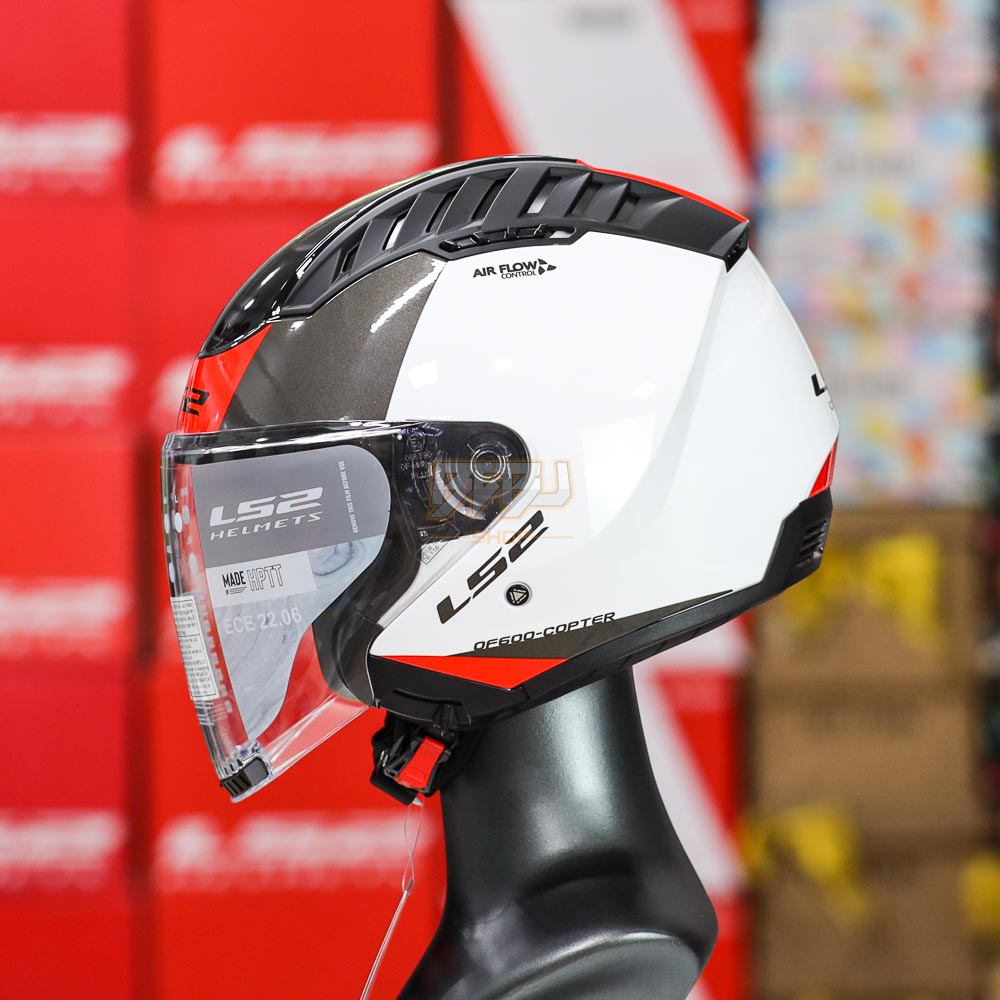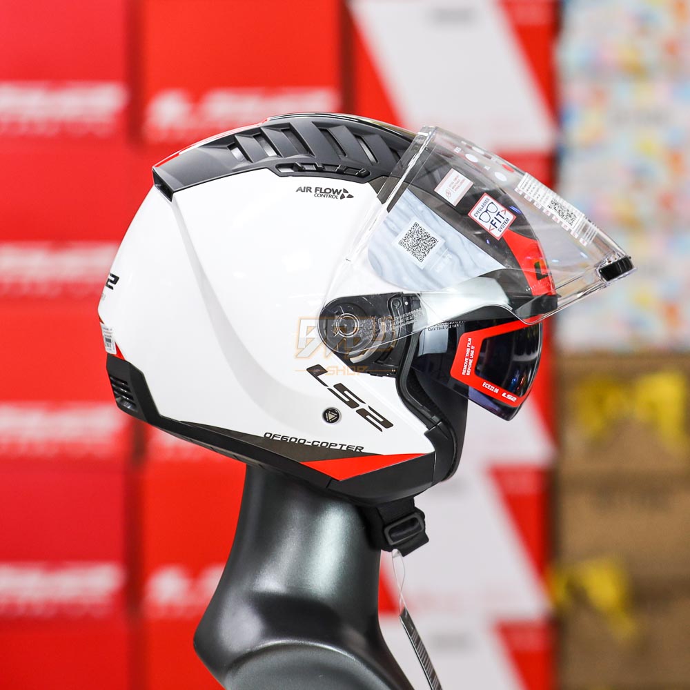 Mũ bảo hiểm 3/4 LS2 OF600 Trắng Đỏ Bóng – 2 kính tiện lợi, thiết kế đẹp mắt, đạt chuẩn an toàn ECE 22.06, lót kháng khuẩn, nhẹ và thoáng khí. Phù hợp mọi nhu cầu di chuyển.