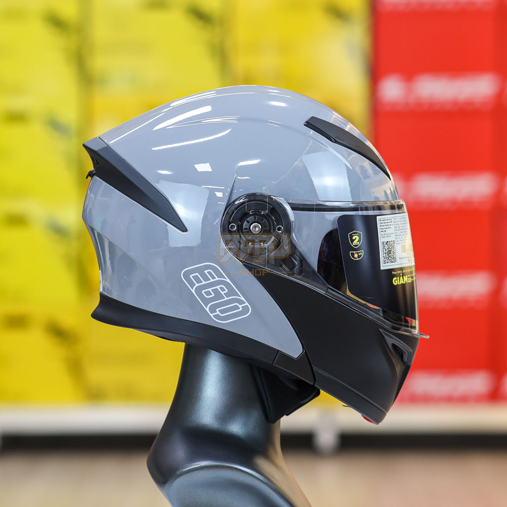 Mũ bảo hiểm lật hàm EGO E9 thiết kế mạnh mẽ, trang bị 2 kính tiện lợi, lớp vỏ ABS bền bỉ, đệm lót êm ái, kiểu dáng thời trang. Màu xi măng bóng sang trọng, phù hợp đi phố lẫn đi phượt. Giá rẻ – chất lượng vượt mong đợi!