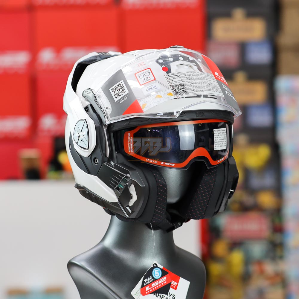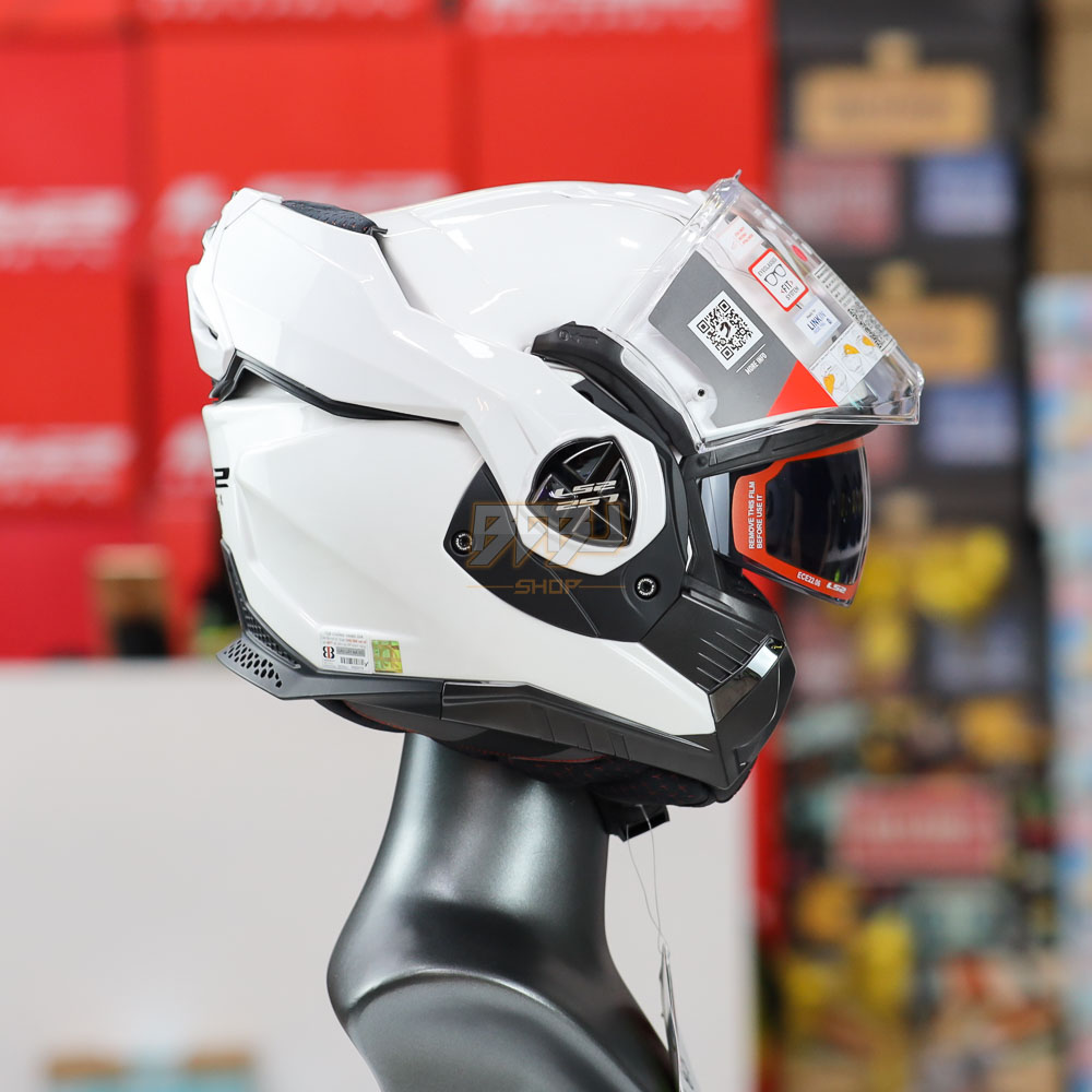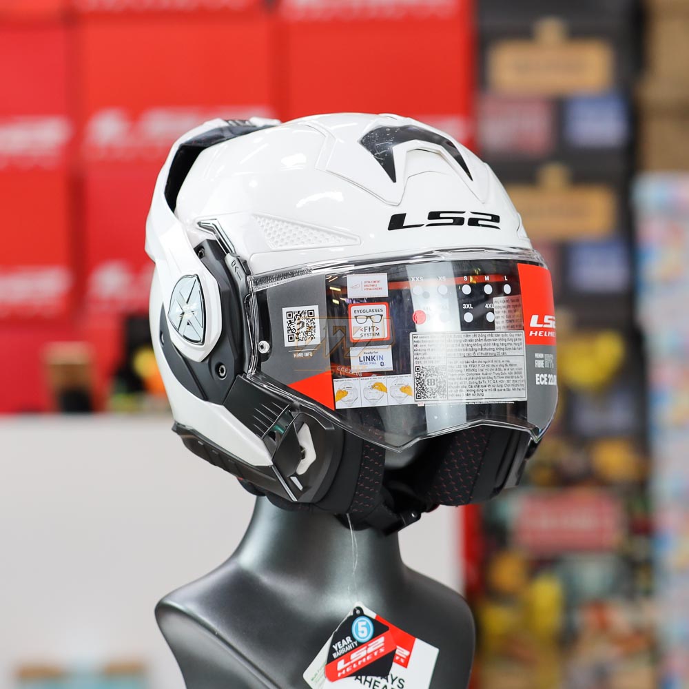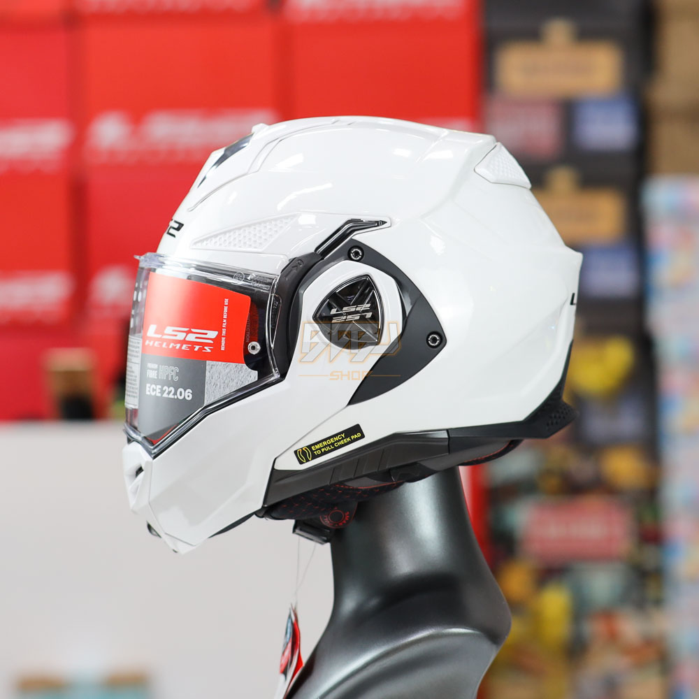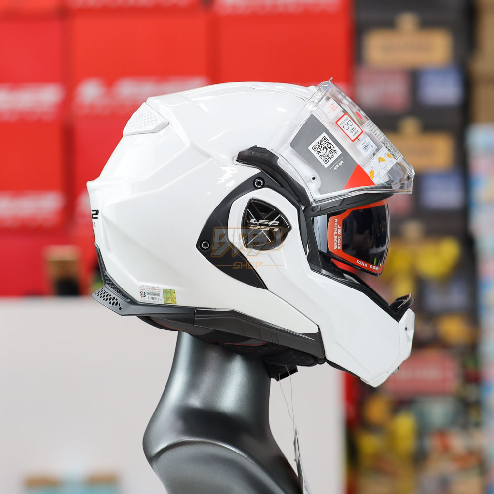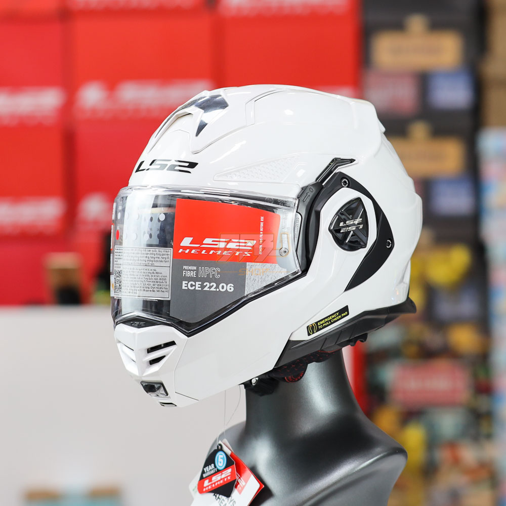 LS2 FF901 HPFC Trắng bóng là mũ lật hàm cao cấp đạt chuẩn an toàn châu Âu ECE 22.06, thiết kế lật 360 độ tiện dụng, vỏ sợi thủy tinh HPFC siêu nhẹ, kính râm tích hợp và khả năng thông gió vượt trội.