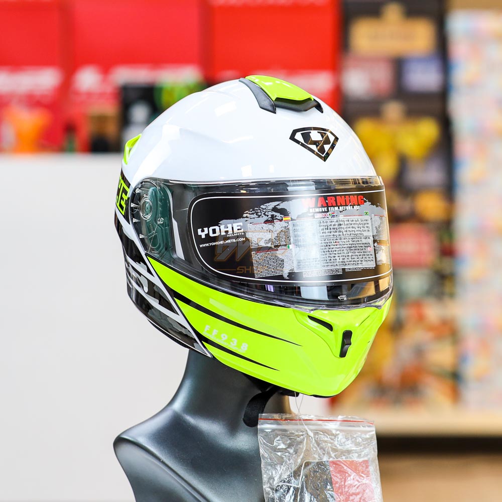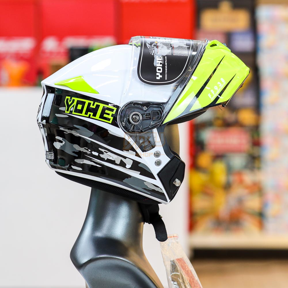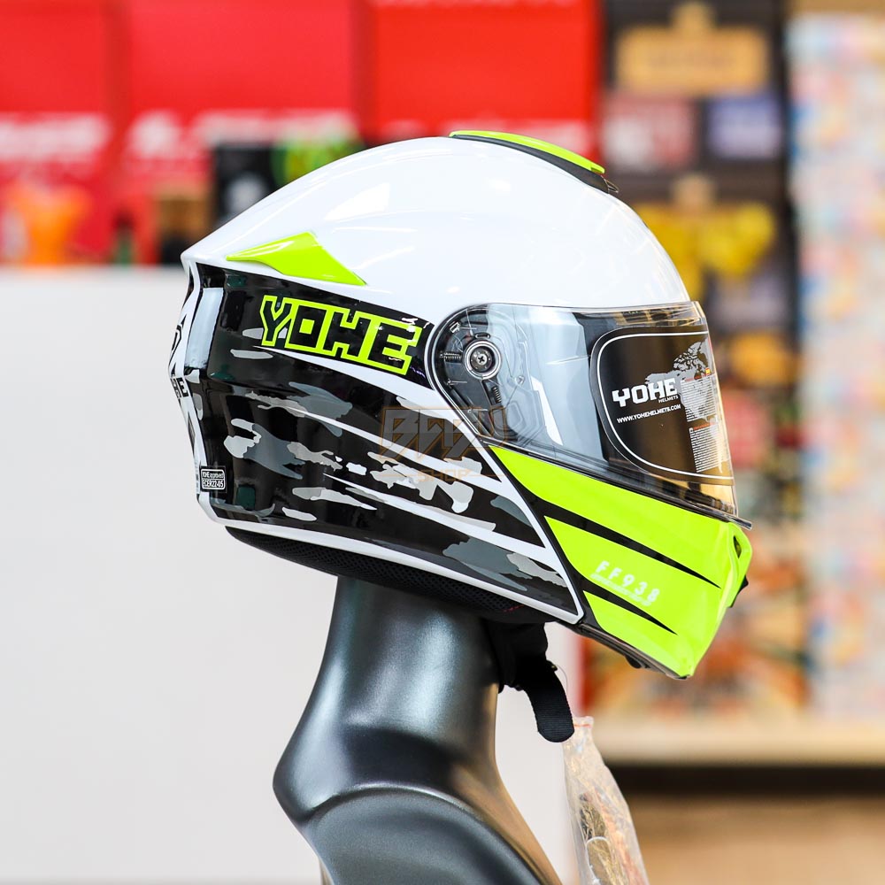 Yohe 983 là dòng mũ lật hàm nổi bật đến từ thương hiệu Yohe Helmets – một trong những nhà sản xuất mũ bảo hiểm danh tiếng đạt chuẩn ECE. Với thiết kế mạnh mẽ, phối màu trắng – vàng neon cá tính, chiếc mũ mang đến vẻ ngoài thu hút, đồng thời đảm bảo an toàn và tiện lợi cho cả đi phố lẫn đi tour.
